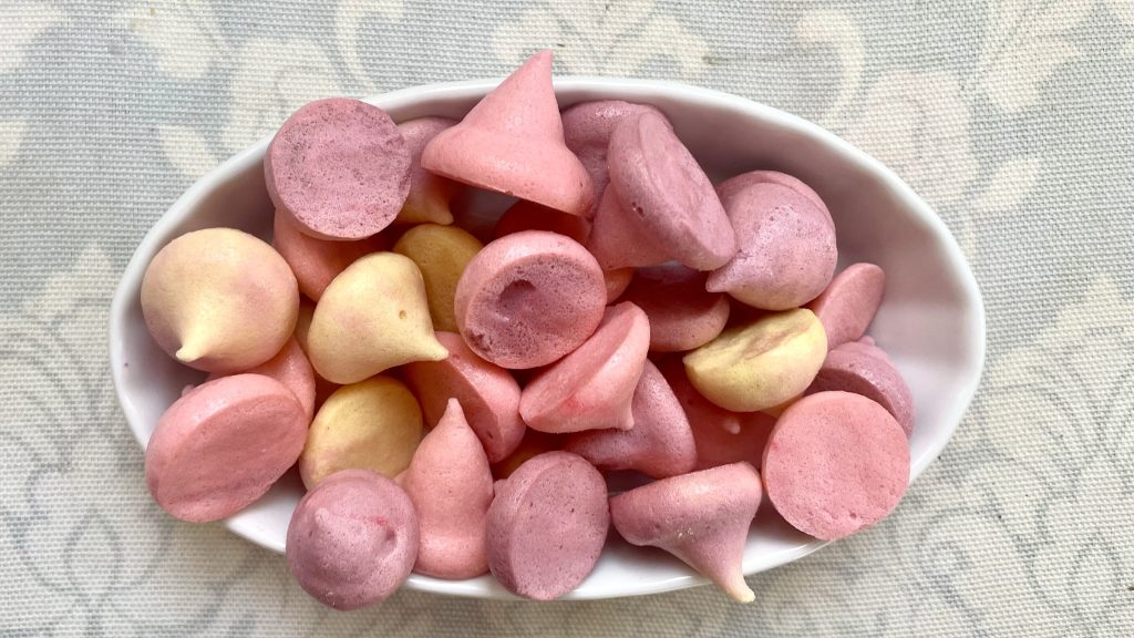 Bake for about 50 minutes, keeping an eye on the meringues to ensure they don’t brown excessively. Because of the honey, they’ll naturally have a slight golden-yellow tint, unlike sugar-based meringues.